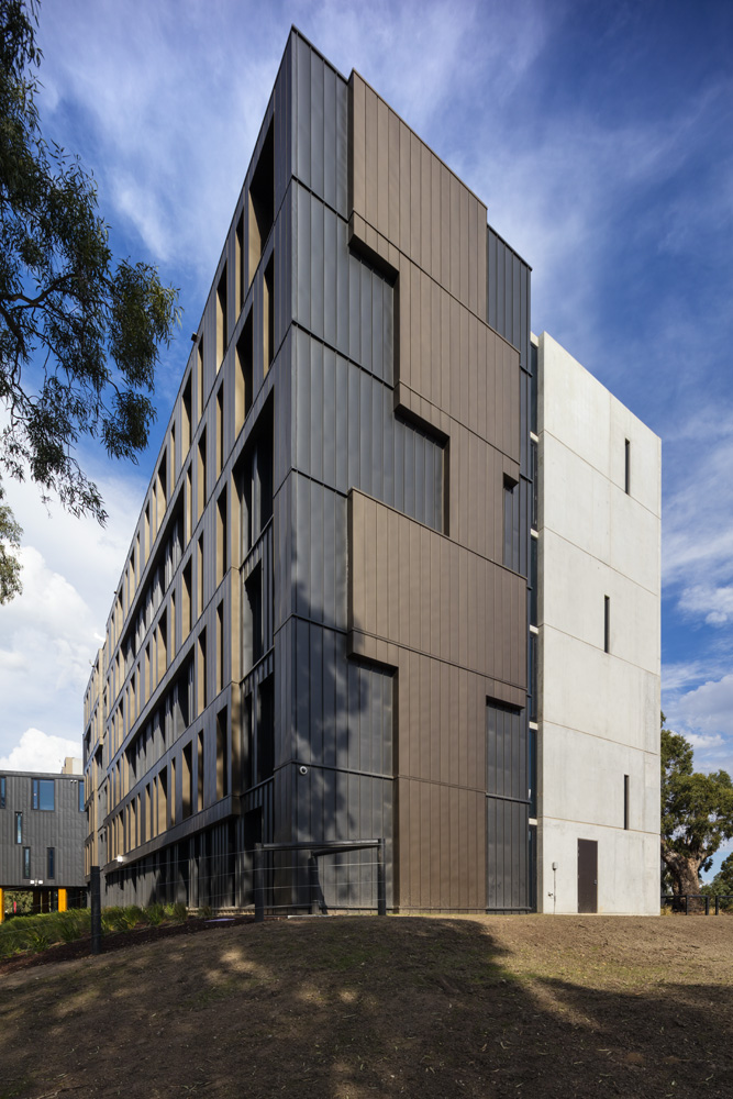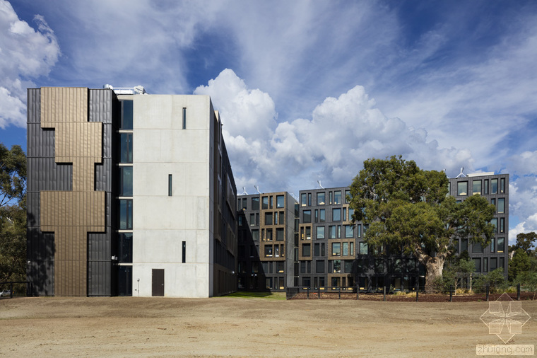 項(xiàng)目坐落于墨爾本本多拉地區(qū),是RMIT大學(xué)的學(xué)生公寓。RMA事務(wù)所受RMIT所托設(shè)計(jì)學(xué)生公寓,其設(shè)計(jì)將為在校生提供最好的居住環(huán)境。RMA事務(wù)所與RMIT以及公寓的經(jīng)營(yíng)者Unilodge緊密合作,保證居住在公寓里的人可以享受到公共空間帶來的各種便利,并在核心區(qū)設(shè)計(jì)充足的學(xué)生活動(dòng)功能。該建筑的設(shè)計(jì)是簡(jiǎn)單的偏斜十字架,被澳大利亞古老的植物環(huán)繞。這些樹木包括以Wurundjeri氏族祖先命名的Keelbundoora Scarred Trees。