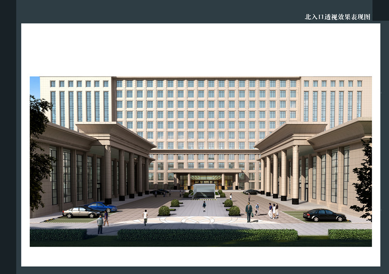 作為臨沭產(chǎn)業(yè)區(qū)的地標(biāo)性建筑,建筑形態(tài)力求體現(xiàn)高端大氣的特點(diǎn),將會(huì)議廳和高層辦公樓進(jìn)行南北分開(kāi),夾道而迎,高層辦公則為簡(jiǎn)潔洗練的豎向大樓,水平和豎向的立面,通過(guò)連廊聯(lián)系,構(gòu)成流暢完整的形態(tài)邏輯。本方案通過(guò)設(shè)置中庭、空中花園、架空景觀層等手法,達(dá)成通風(fēng)、采光等被動(dòng)生態(tài)技術(shù),并豐富空間體驗(yàn);同時(shí)引入種植屋面、太陽(yáng)能、雨水回收、中水循環(huán)等技術(shù),大幅降低能耗及碳排放,達(dá)到高標(biāo)準(zhǔn)的生態(tài)建筑要求。