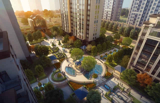 泰爾·書香頌項目在設(shè)計中,以中軸線呈現(xiàn)兩翼規(guī)整對仗,營造出縱深尺度宏大的莊嚴與氣勢,突出尊榮華貴的氛圍,利于減少戶型種類,減少施工難度,利于打造主次分明的景觀系統(tǒng)。